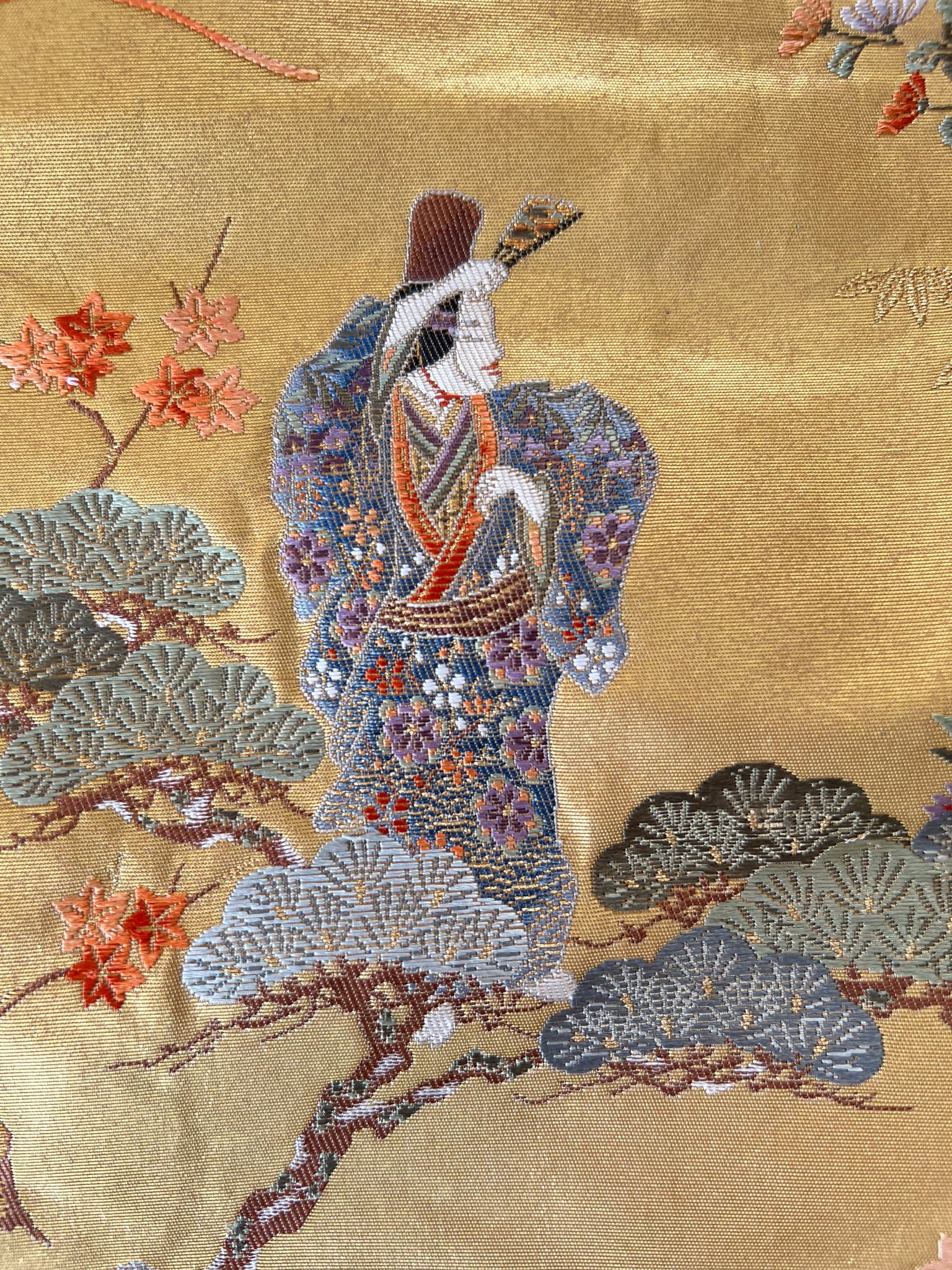 This unique wall decoration is handmade from a vintage obi — the traditional belt worn with kimono in Japan.