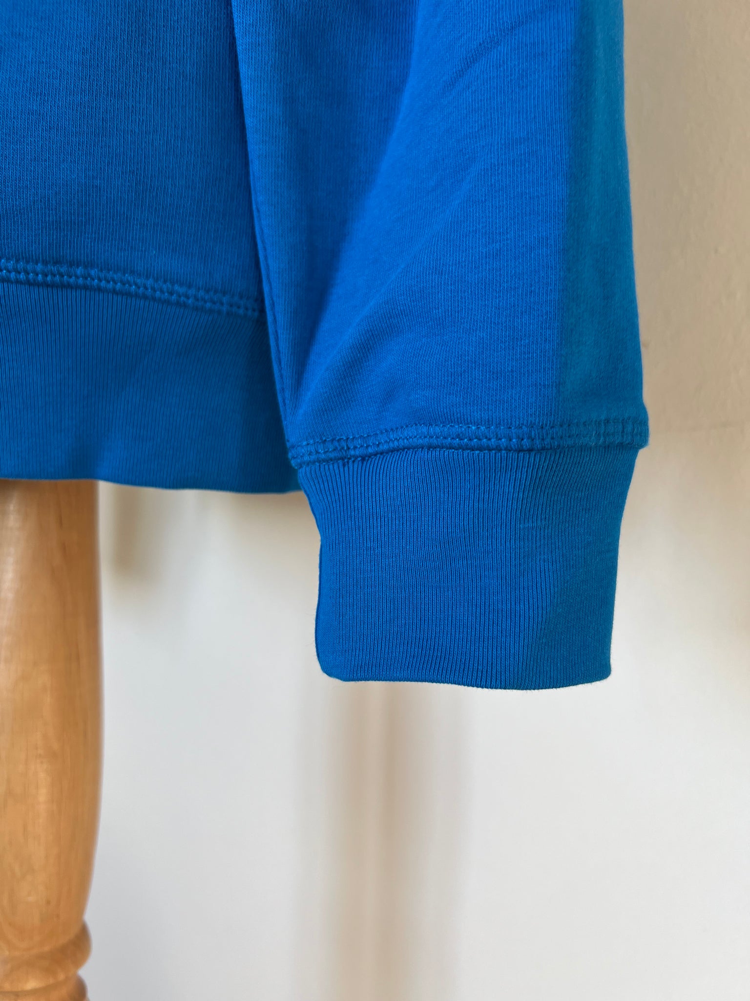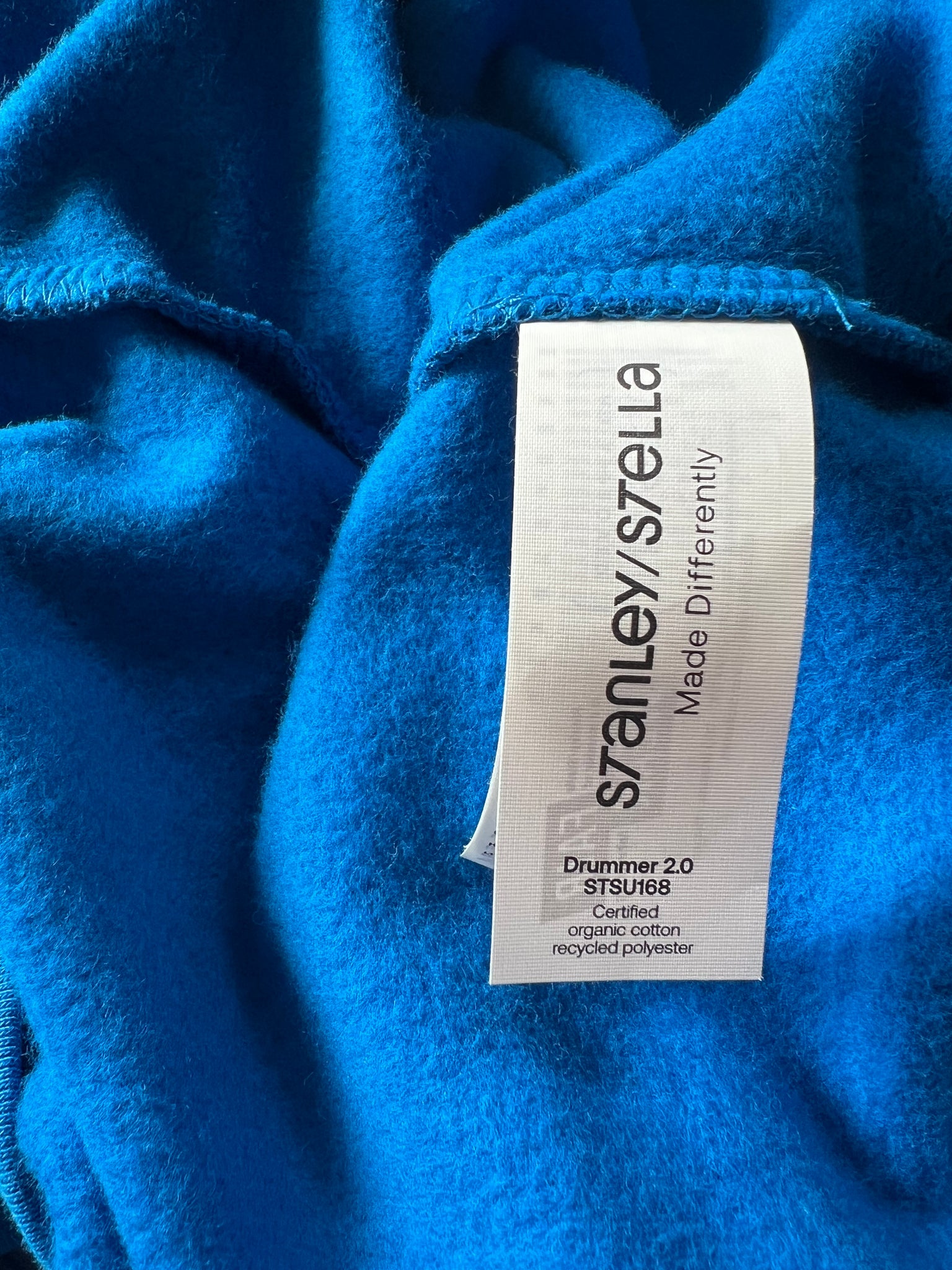 The fabric left from turning it into a gown has been paired with an organic cotton hoodie.