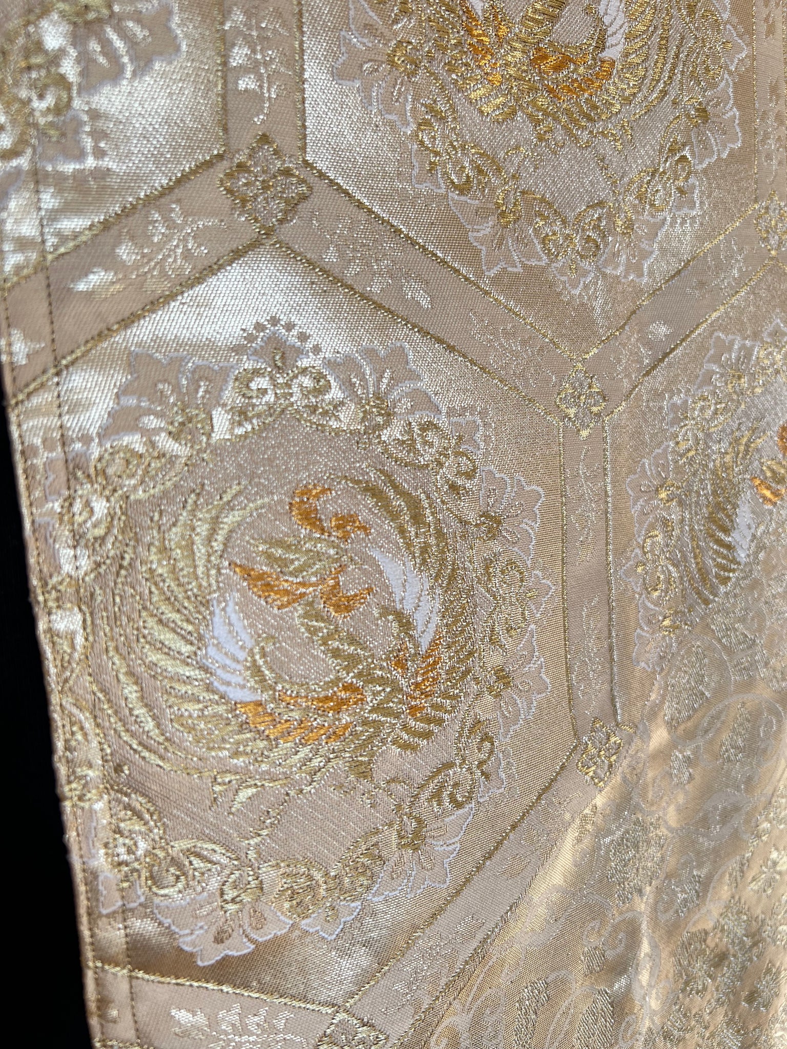 A Fukuro obi (袋帯) is a long, decorative sash traditionally worn with formal kimono in Japan. Usually woven from luxurious silk with intricate patterns, the obi is a symbol of Japanese craftsmanship and culture.